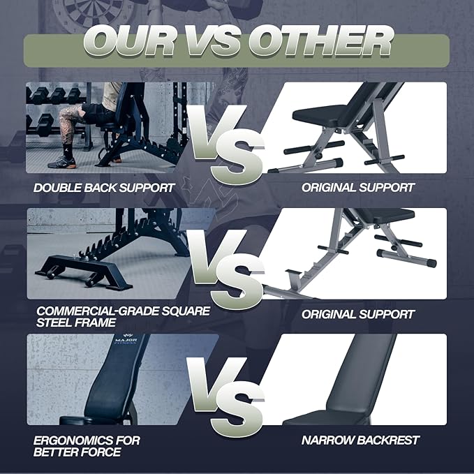 MAJOR FITNESS Weight Bench, Adjustable Workout Bench for Strength Training, Bench Press, and Full-Body Workouts for Home Garage Gym