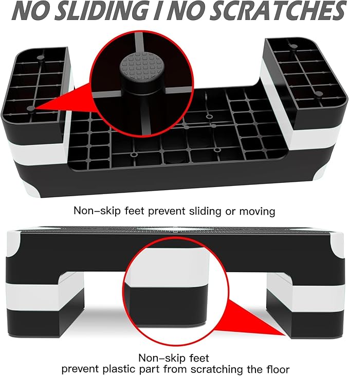 - ANTI-SLIP & NO SCRATCHES: The circular grooves and non-slip textured top of GYMMAGE Workout Stepper provide more grip and traction for exercise, prevent you from slipping/sliding. And leave you feeling safe and your movements worry free. The 4 non-slip rubber feet provide stable performance and leave no scratches