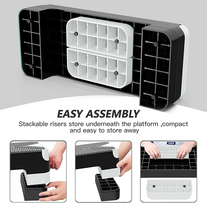 Aerobic Exercise Step, Adjustable Aerobic Stepper for Exercise, Workout Step Platform for Step Up, 26.5" Step Deck with 4” 6” 8” Adjustable Height Risers, Women Home Gym Cardio Fitness
