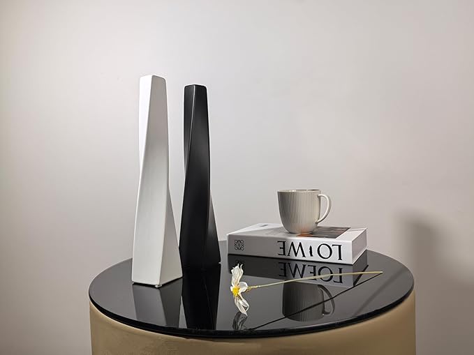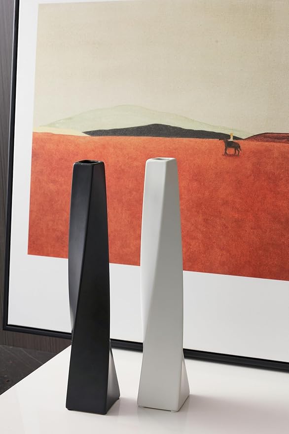 - Modern Geometric Design:Embodying minimalist aesthetics, this slim white ceramic vase features a sleek rotating geometric pattern that blends seamlessly into contemporary, Scandinavian, or industrial-style decor. Its clean lines and monochrome palette make it a timeless piece for urban living