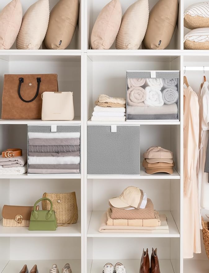 - See-Through Window: Unique transparent window design allows you to quickly find your items without opening the cube storage bin. Ideal for both visibility and discretion, simply flip to the back if you prefer to hide stored contents. These clear storage bins keep your closet organizers and storage looking tidy and organized.