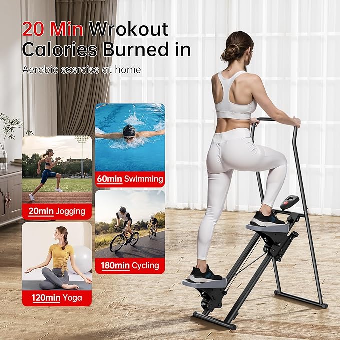 - EFFICIENT FAT BURNING - Just 20 minutes on the climber is the equivalent of a 50-minute jog, a 120-minute swim, a 60-minute hike, or a 4-mile bike ride, making it an efficient and effective option for any fitness level.