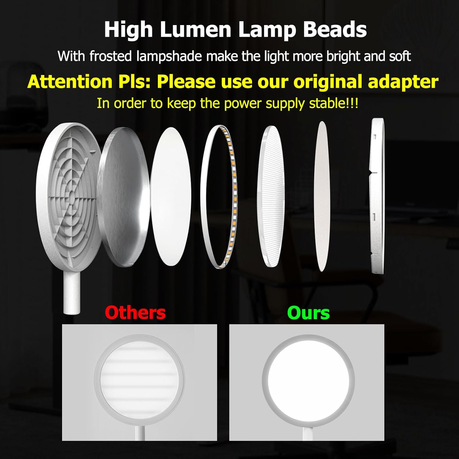 - [ 3 LED Colors & Brightness Memory Setting ] White/Natural/Warm, 3 different LED lighting colors are suitable for everyone to use, You can adjust the brightness to suit your needs, and the table lamp will remember the brightness&color setting, the next time you turn on this night lamp, brightness&color is the same, no need to re-adjust every time.