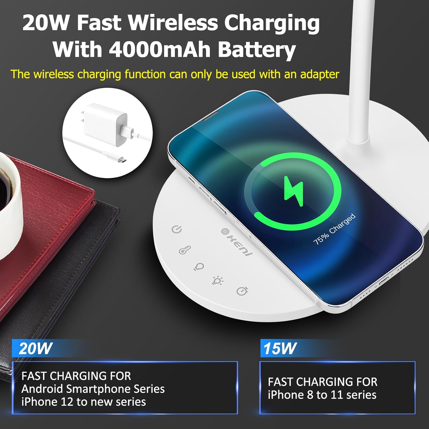 G Keni Ultra Bright Cordless Desk Lamp with Wireless Charger for Home Office Dorm, 4000mAh Dimmable Bedside Reading Desk Lamp with Timer, 3 Color Modes, Eye Care Touch Desk Light for Study Work (X5)