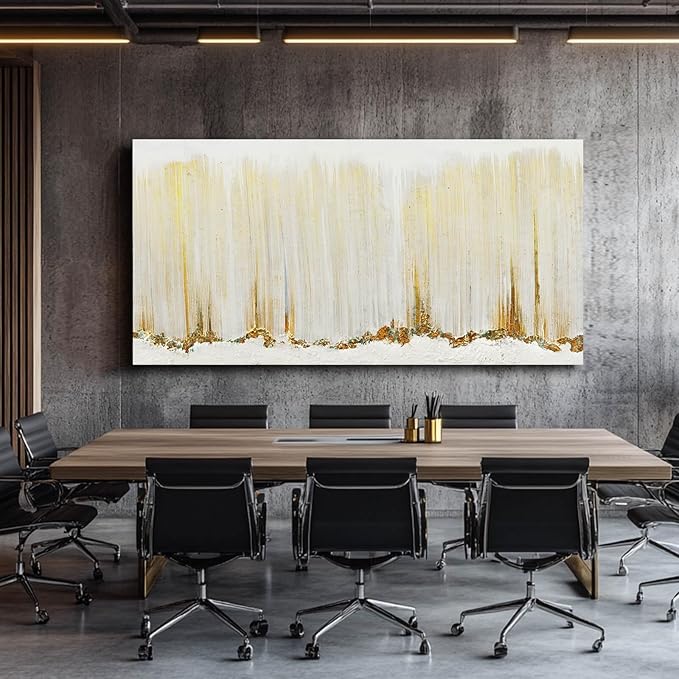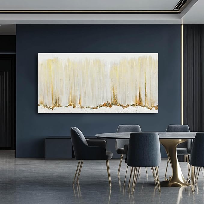 WINKAILIN Large Beige Pictures Wall Decor for Living Room Textured Wall Art for Home Modern Artwork Gold Line Art for Walls 29"x 58" Dining Room Decoration
