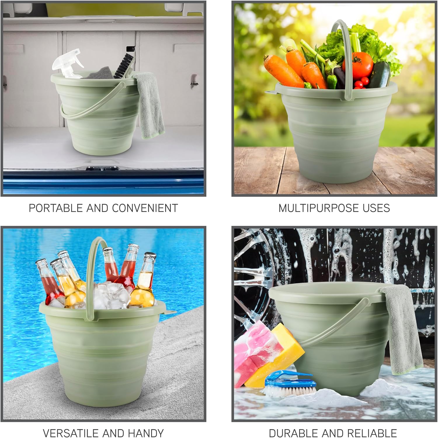 - Durable and Reliable: Each bucket is crafted from sturdy materials, ensuring longevity. The collapsible design ensures a flexible bucket for easy opening and folding.