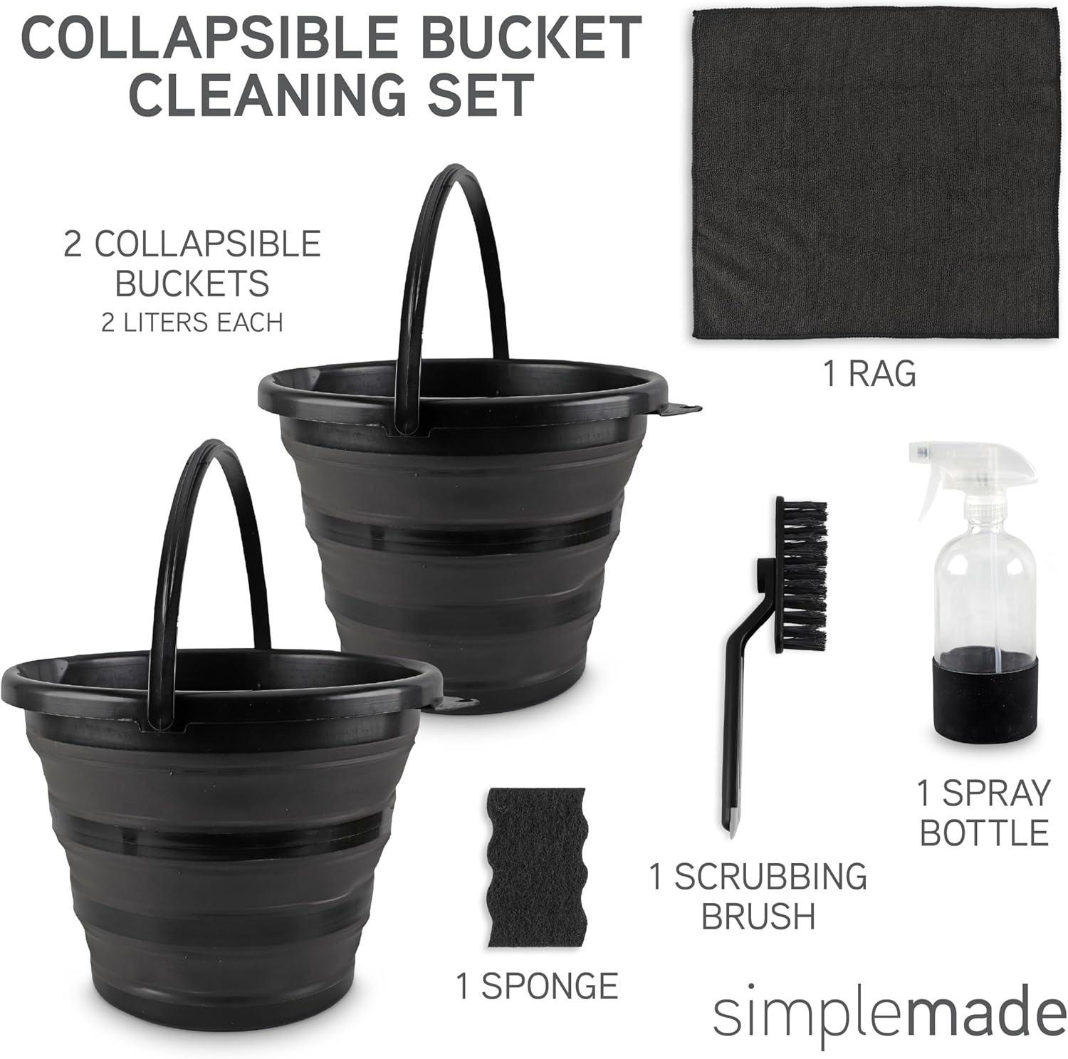 SIMPLEMADE Collapsible Bucket Cleaning Set - Includes 2 Foldable Buckets, Spray Bottle, Rag, Scrubbing Brush and Sponge - Holds Up to 10 liters, Easy Storage, All-Purpose Cleaning Solution
