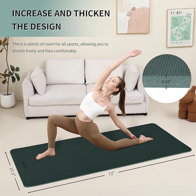 - 【Premium Thick Yoga Mat for Enhanced Comfort】Experience superior cushioning with our 8mm (1/3") thick yoga mat, designed to protect joints during intense workouts. Ideal as a gym mat or Pilates pad, its rebound-enhanced surface provides optimal support for yoga, HIIT, and floor exercises