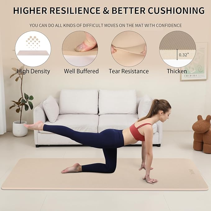 - 【Premium Thick Yoga Mat for Enhanced Comfort】Experience superior cushioning with our 8mm (1/3") thick yoga mat, designed to protect joints during intense workouts. Ideal as a gym mat or Pilates pad, its rebound-enhanced surface provides optimal support for yoga, HIIT, and floor exercises