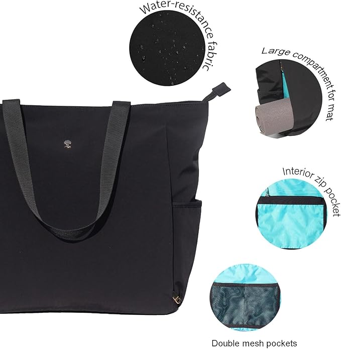 - ❤ Top Full Zipper Close & Large Capacity – Size (18" * 15.3" * 6.2") , This Tote features front 2 side zipper pockets for yoga mat,Both side mesh pockets for water bottles ,a large Back compartment.The main pocket with 1 large zipper pocket,1 open pocket and 2 Mesh pocket, It's provide plenty of space for storing gym equipment, workout gear, extra clothes, a water bottle, your mat, towels, and so much more.