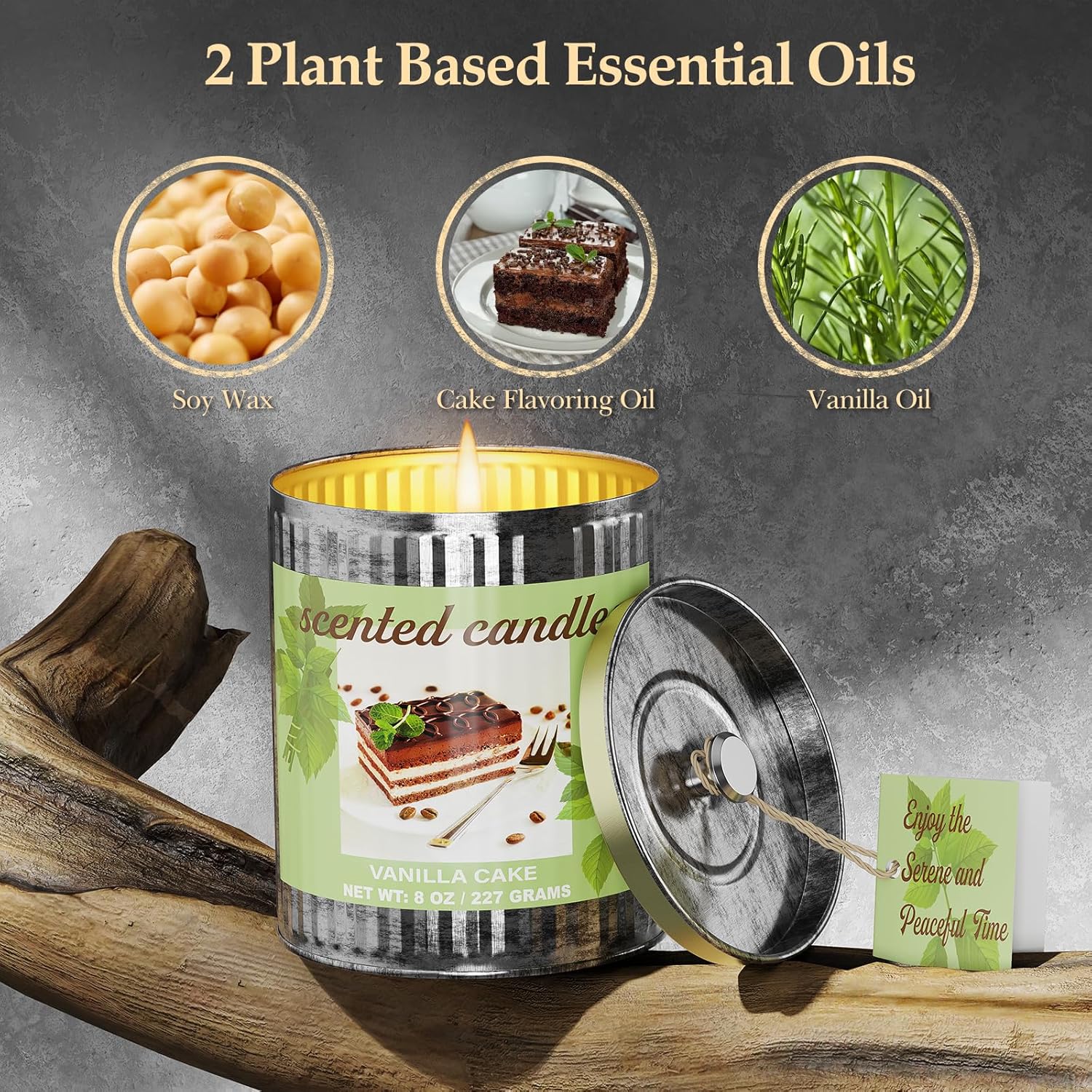 Vanilla Cake Soy Wax Scented Candles Set | 8% Essential Oil 2-Pack 454g 60H Burn Time | Smokeless Aromatherapy Jar Tin Candles for Relaxation, Sleep | Perfect Home Gift for Men/Women/Fathar's Day