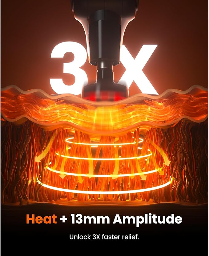 - Advanced Heat Therapy for Faster Relief: Experience the transformative power of targeted warmth with our massage gun’s heated head, designed to accelerate relaxation and enhance every session. The penetrating heat melts into stiff muscles alongside precise percussion to effortlessly loosen tension, release persistent knots, and unfold a sensation of luxurious relief
