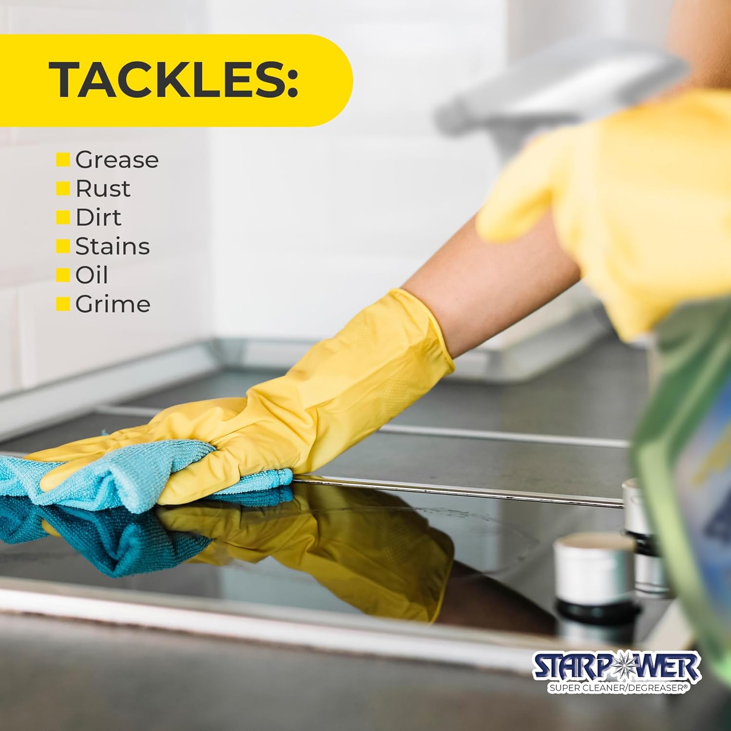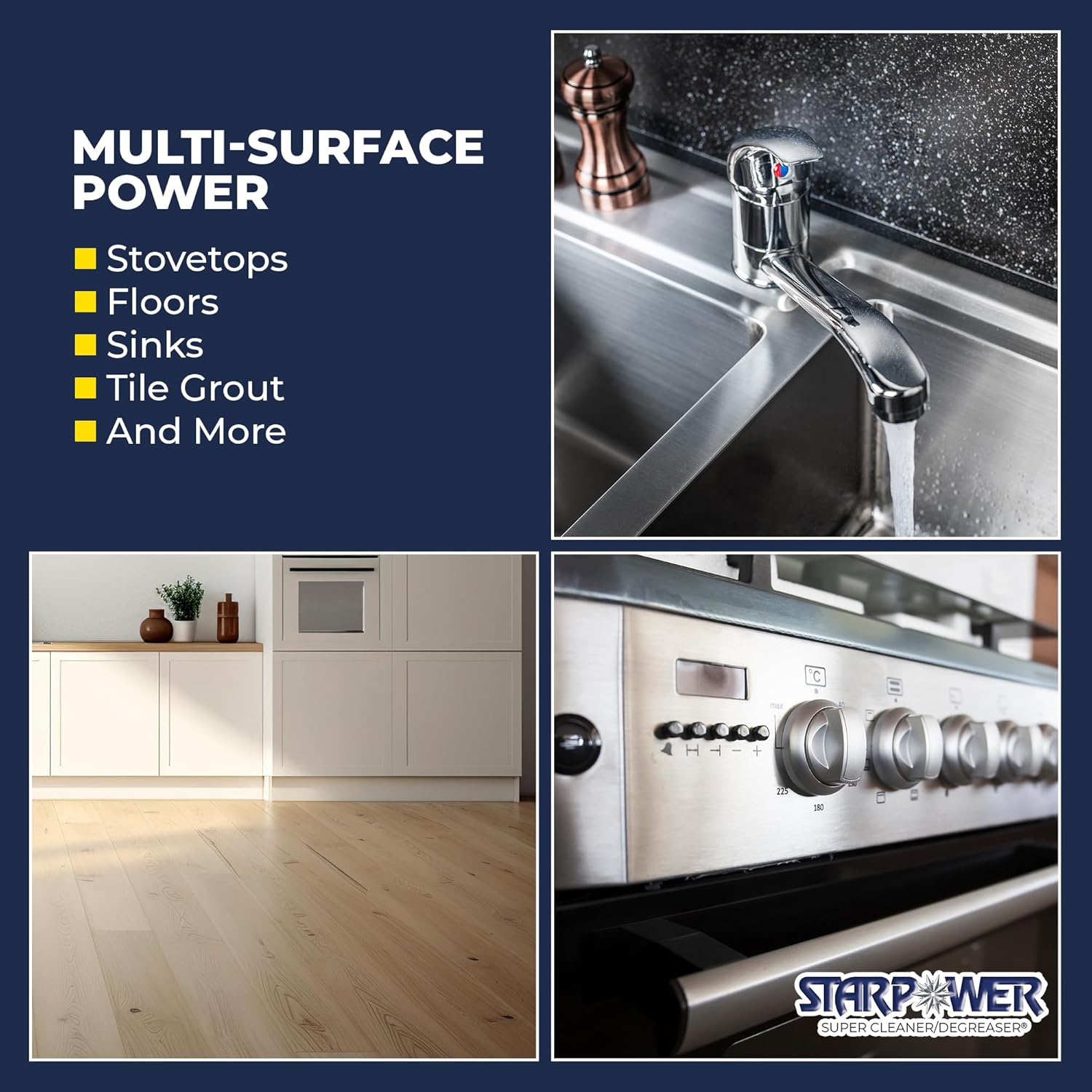 - ULTIMATE MULTI-PURPOSE MULTI-SURFACE POWER: Simplify your routine with STARPOWER, the ultimate universal cleaner degreaser that replaces multiple cleaning supplies, tackling grease, dirt, stains, oil, and grime throughout your home or workplace
