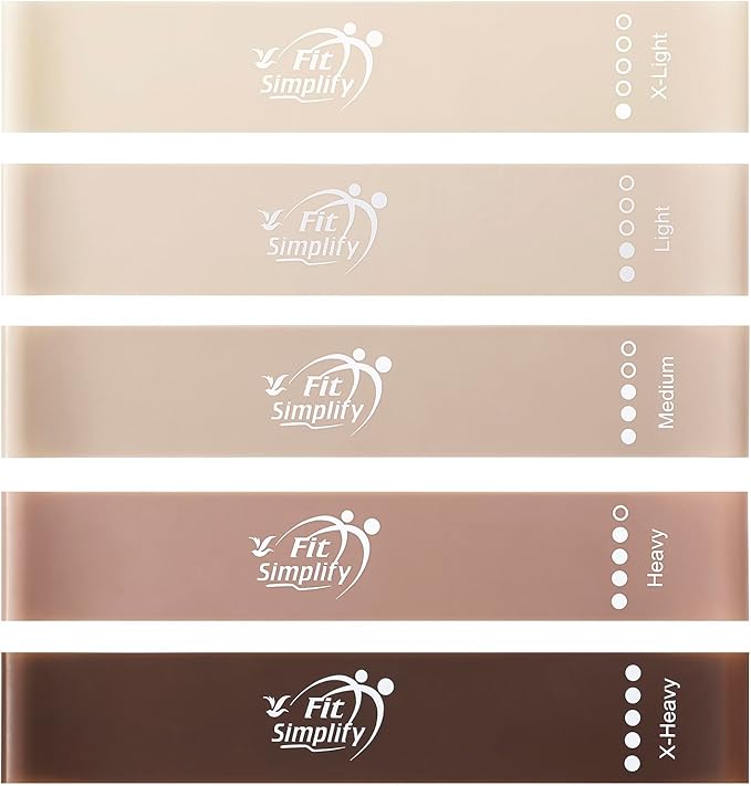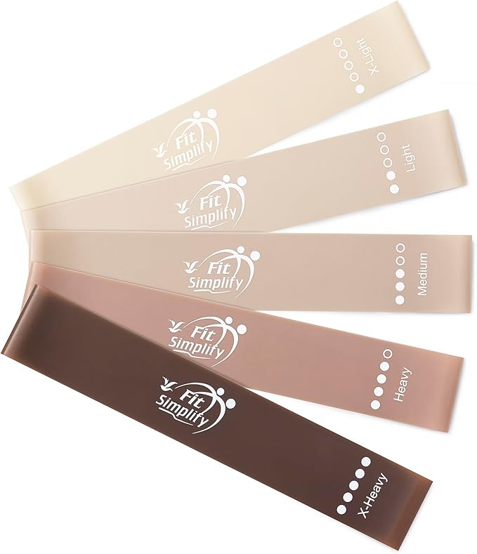 Fit Simplify Resistance Loop Exercise Bands with Instruction Guide and Carry Bag, Set of 5