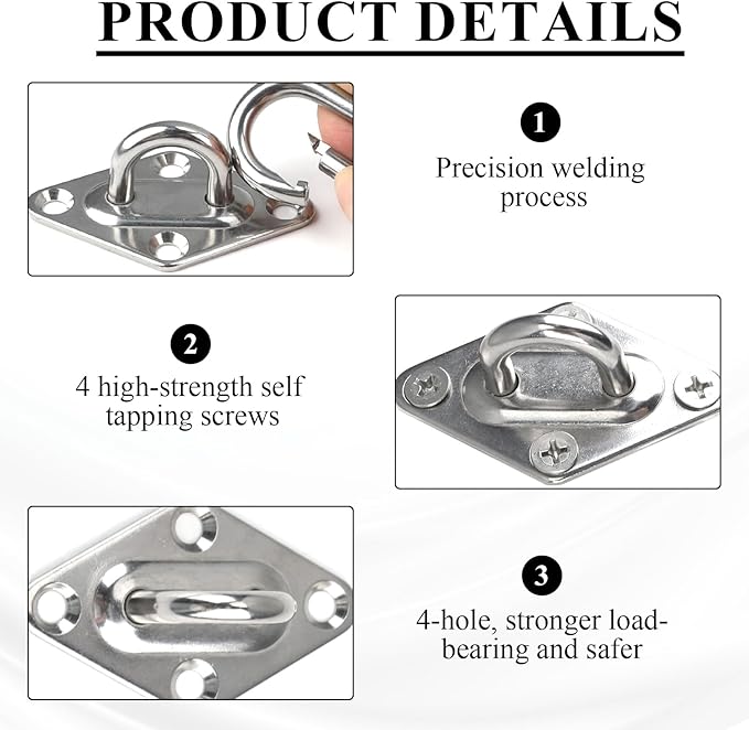 - Firm and Durable: The wall anchor is constructed entirely of high-strength stainless steel. Its surface adopts matte process, which has better wear resistance and durability. Safe and secure, it can withstand a maximum pulling force of up to 330 lbs. Securely secures a variety of resistance bands, suspension training bands, elastic bands, and more