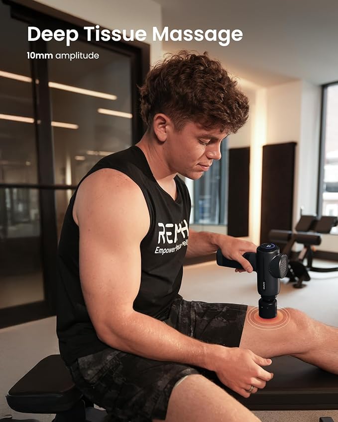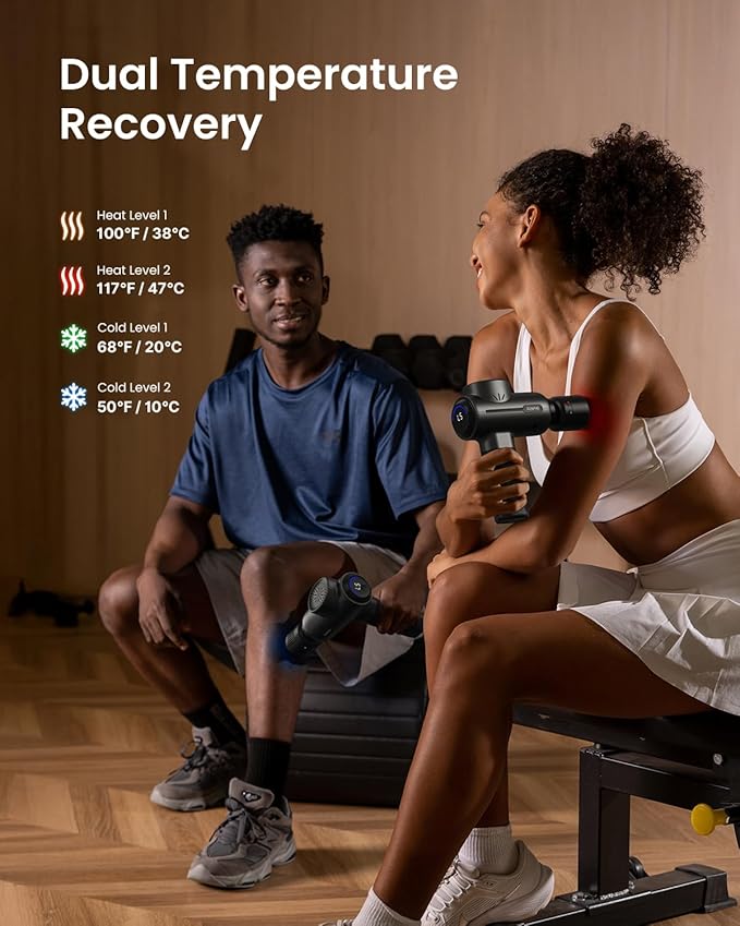 - Massage Gun with Heat and Cold: This massager gun is equipped with a heat and cold head with 4 adjustable temperature settings to target various muscle groups