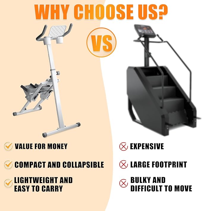 - 【Compact and Foldable】The folding vertical cardio exercise climber's compact folding design makes it easy to store. Folding and unfolding in just 1 minute, it's the perfect choice for an efficient workout in limited space.