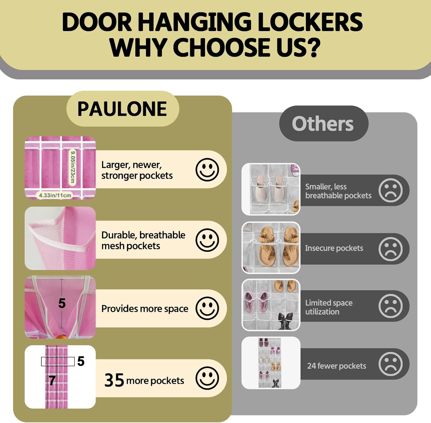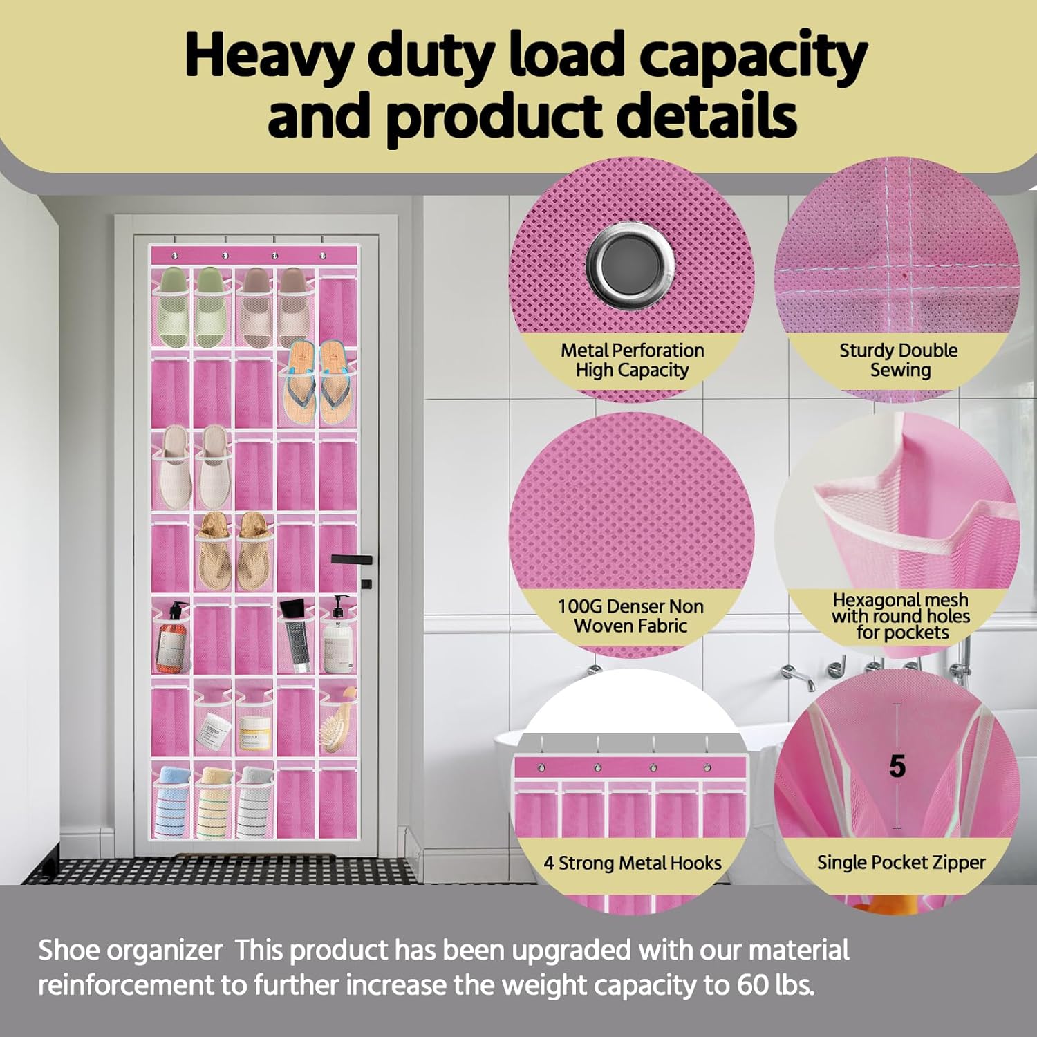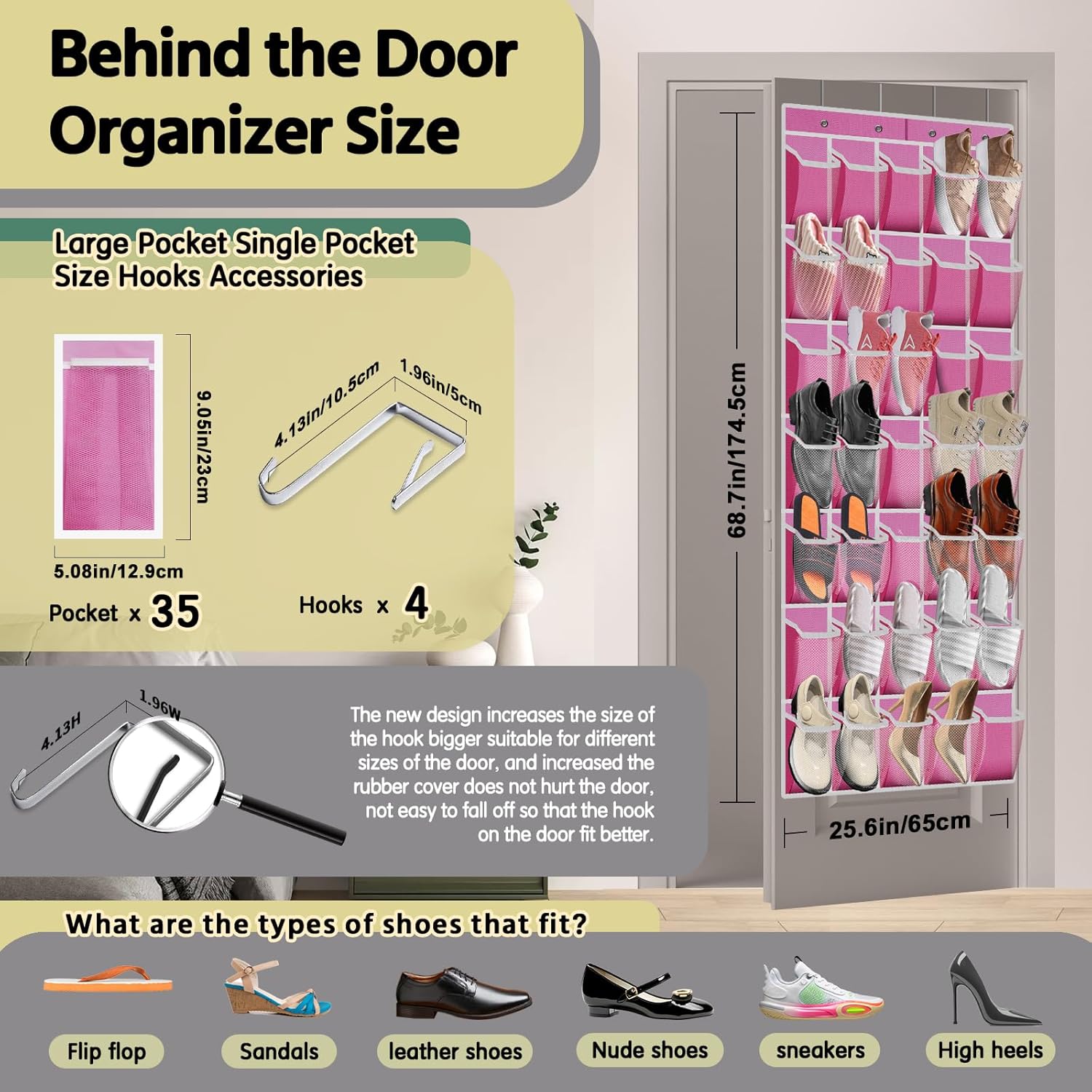 35 Pocket Over the Door Shoe Organizer,Reusable Breathable Large Mesh Bag Men's & Women's Sneaker Organizer,Shoe Organizer for Kids,Hanging Shoe Storage Hanging Bag (Pink)
