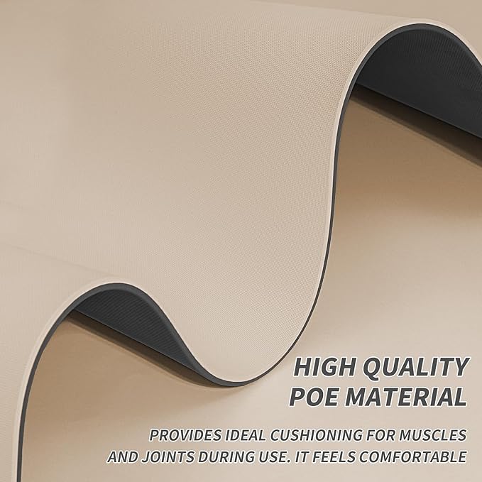 - The POE Yoga Mat Is A Truly Eco-Friendly and Odorless Option: It is softer, lighter, more elastic, and more comfortable compared to TPE yoga mats. However, due to prolonged storage in a rolled state, the inner end of the mat might temporarily remain curled when first unrolled. Don't worry - simply reverse fold that end before use, then lay it flat for practice. After a few days of use, the mat will gradually flatten out completely.