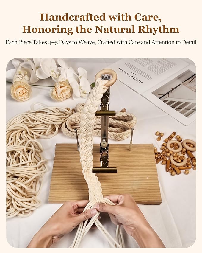 - 【ARTISAN HANDWOVEN CRAFTSMANSHIP】In a fast-paced world, we weaving each piece with patience and intention. Every Eptusmey yoga strap taking 4–5 days to complete from yarn selection to the final hand-braided design in a serene Desert Oatmeal shade. Accented with natural beechwood rings, horn buckles and decorative tassels with wooden beads, this strap blends function with bohemian style. It doubles as a chic home decor piece and an effortlessly cool accessory for on-the-go lifestyles.