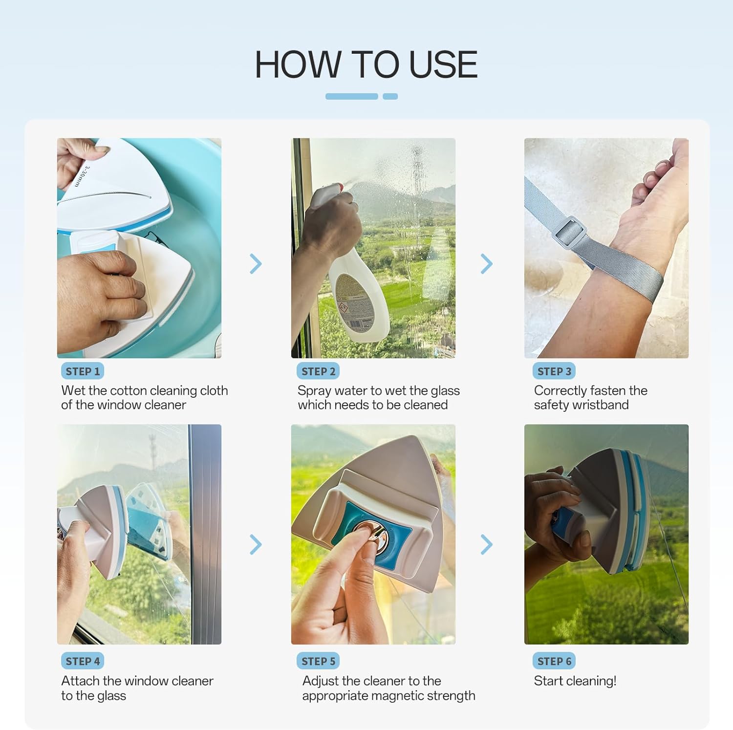 - Adjustable Magnetic Force for Versatile Cleaning: Easily adjust the magnetic force to suit different glass thicknesses from 0.3" to 1". Our window cleaner offers five levels of magnetic strength, making it perfect for cleaning all types of windows, from thin to double-glazed. No more hassle of switching between different cleaning tools.