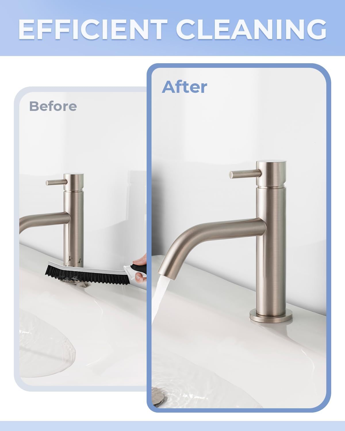 - Multi-purpose Brush: Crevice cleaning brushes for cleaning a variety of surfaces, including faucet and bathtub grout, shower door grooves, toilet seat gaps, floor tile grout, sliding glass door tracks, door rail grooves, around bathtub, kitchen sink edges, household appliance surfaces and crevices (microwave, coffee maker, oven, washing machine, fan), Window rails, shutters, stoves, keyboards, bathtubs, vents, swimming pools, vehicles, furniture, boats, countertops, shower door frames, toilet tank baseboards, etc.