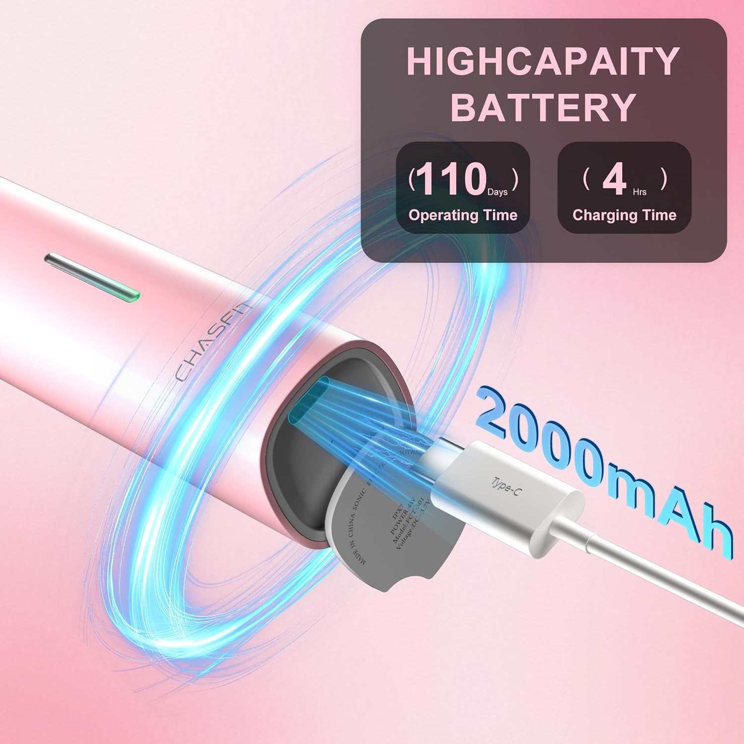 - Long-Lasting Battery β Equipped with a 2000mAh battery, a single charge lasts up to 110 days (Whitening Mode (Green) β 30 days; Soft Mode (Blue) β 60 days; Gum Mode β [duration not specified]). It also comes with a travel-friendly toothbrush pouch and a brush head storage case, ensuring worry-free travel anytime, anywhere.