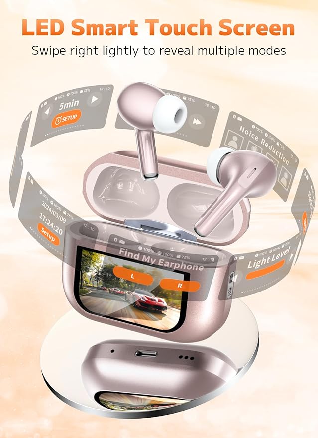 - Smarter and More Convenient: Our wireless earbuds feature a Smart Multifunctional Touch Screen Charging Case, providing a seamless listening experience. Unlike traditional earbuds, you can control volume, skip songs, manage calls, set alarms, and even locate your earbuds directly from the case—no need for your phone. It’s the smarter, more convenient way to stay in control