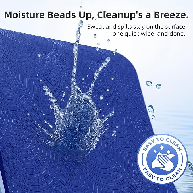 - [Waterproof & Easy to Clean – Fresh in Seconds] Sweat-resistant closed-cell surface wipes clean with a damp cloth. No soaking, no scrubbing—just a fresh mat ready for every session.