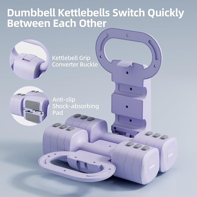 - Convertible Adjustable Dumbbell and Kettlebell in seconds: Perfect for HIIT workouts, bicep curls, kettlebell swings, and apartment-friendly routines. Replace multiple weights with one compact set! The innovative locking mechanism ensures secure conversion in seconds with no loose parts.
