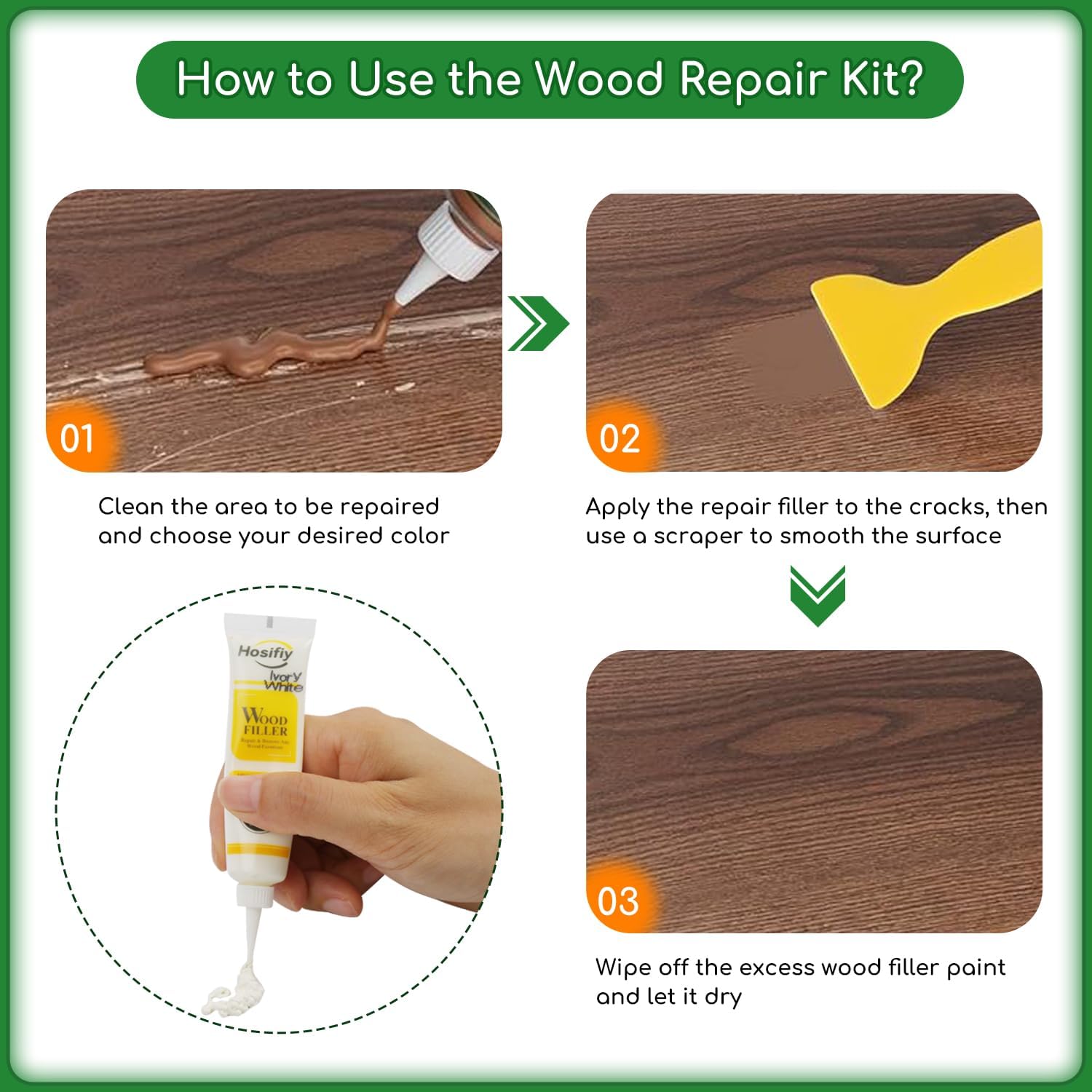 - 【Wood Scratch Repair】: Our wood fillers are suitable for any wooden items and can effectively repair scratches on wood floors and furniture like beds, shelves, cabinets, tables, frames, doors, wood veneers, desk furniture, decorations and much more.