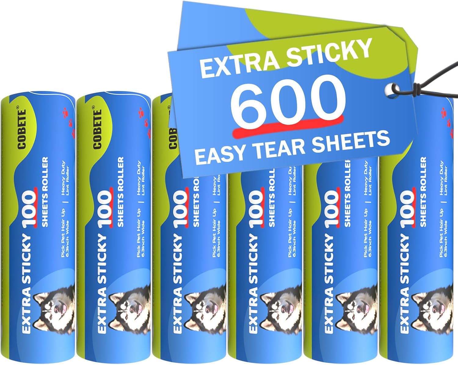 COBETE 6 Rollers Total 600 Sheets Extra Sticky Lint Roller Refills, for 6.3" Dog and Cat Lint Remover for Clothes, Couch, Furniture
