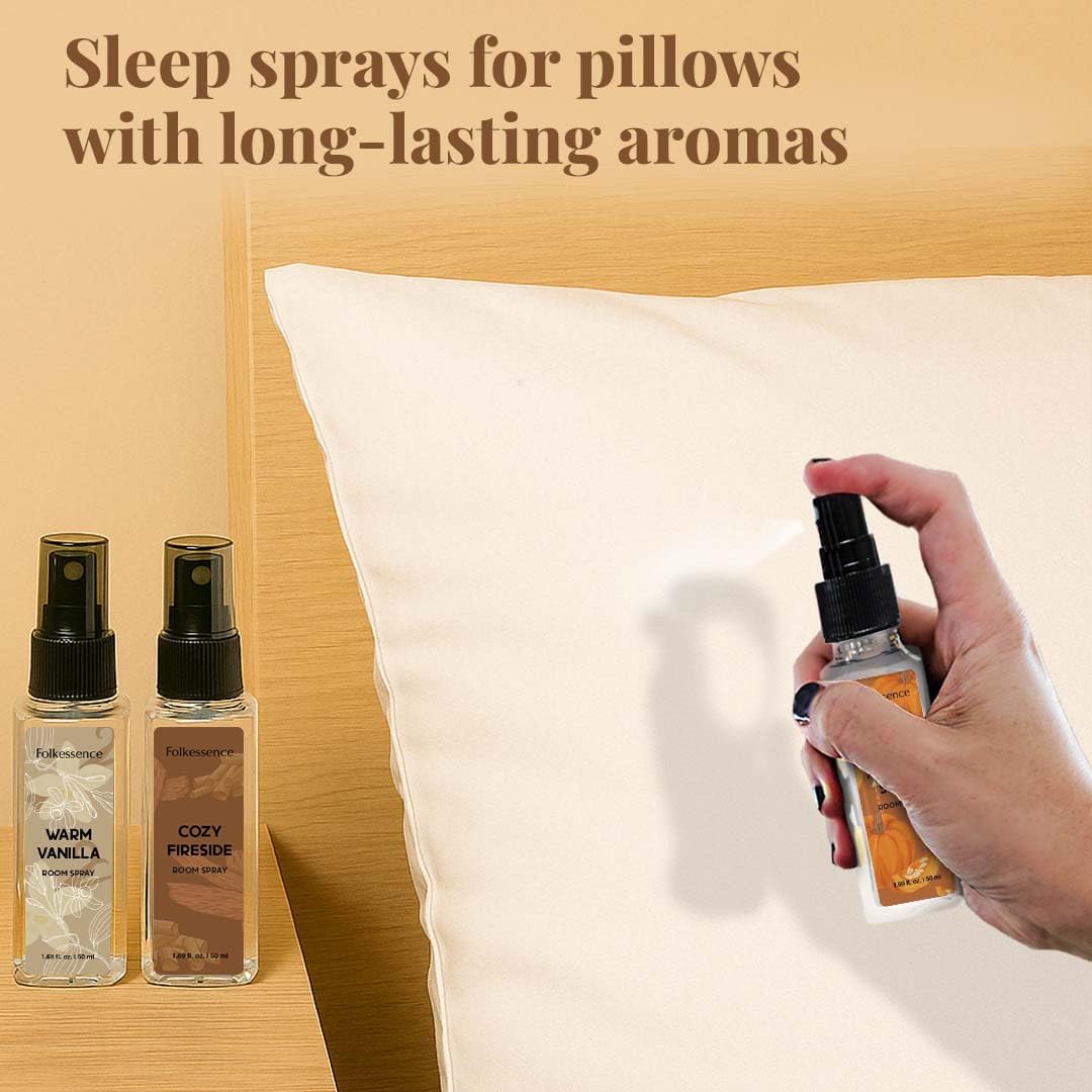 - [THREE LONG LASTING FRAGRANCES]: Immerse your home in our autumn fragrances 150 ml room spray set that is a part of our premium home fragrance products by Folkulture! Enjoy the enduring freshness that revitalizes your surroundings and transforms your space into something soothing with this bathroom and room spray set (5.01 Fl Oz) for sleeping. The greatest fall fragrances like warm vanilla and pumpkin spice or autumn spice scent to add to your collect this cozy season.