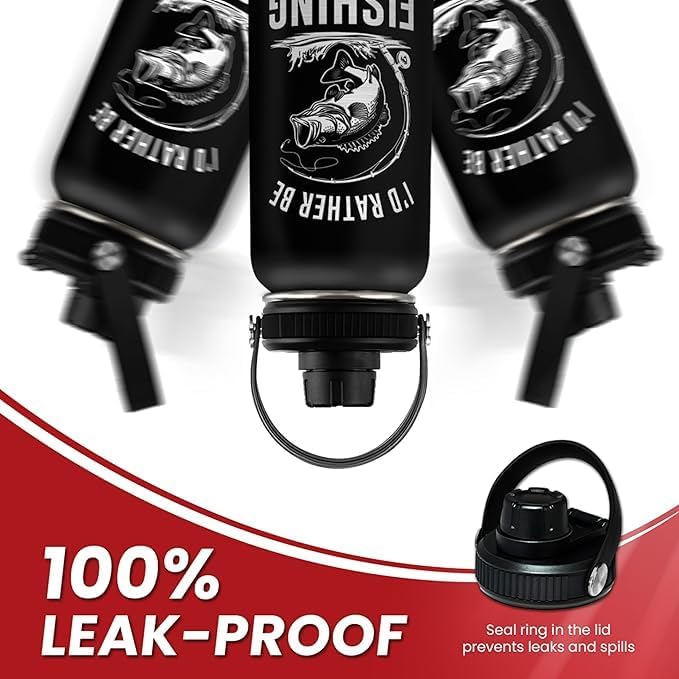 Fishing Insulated Engraved Stainless Steel Water Bottle 32oz, Vacuum Chug Lid Travel Tumbler for Men Friends Dad Grandpa Fisherman, I'd Rather Be Fishing, Gift for Birthday Christmas Father's Day