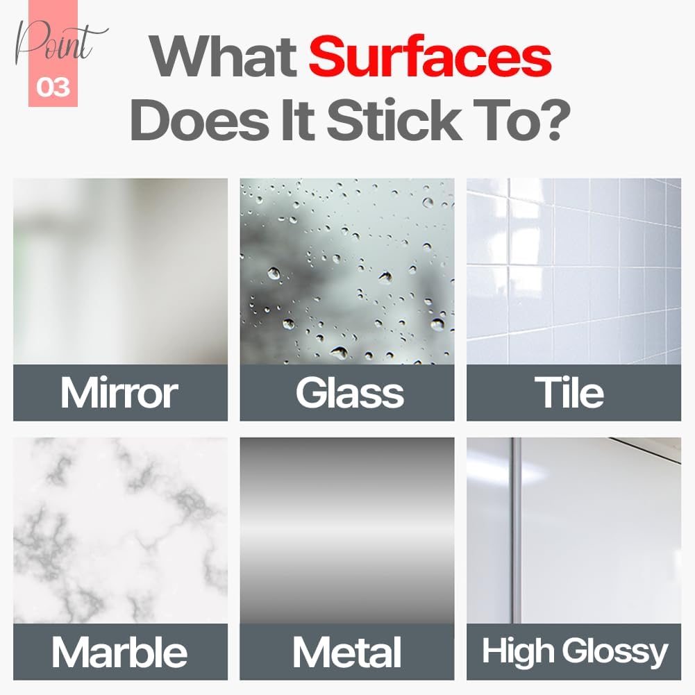 - Versatile Stick& Suction Technology: Experience ultimate convenience with Silunity’s dual-function design featuring both suction and reusable sticker options. On smooth surfaces like tile or glass, it attaches securely with suction alone—no stickers needed—making it easy to reposition anytime. For other surfaces, simply use the included reusable sticker for a strong, reliable hold. Perfectly adaptable to your bathroom's unique layout, it offers flexible placement and optimal space use.