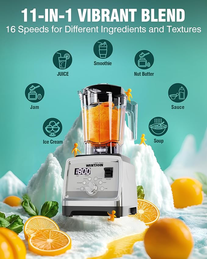- UPGRADED PRO MOTOR: Equipped with an upgraded 9850 model all-copper motor, this powerful blender runs for 30 minutes without overheating. The anti-vibration base ensures stable operation, while the heavy-duty build is tested for 10-year durability