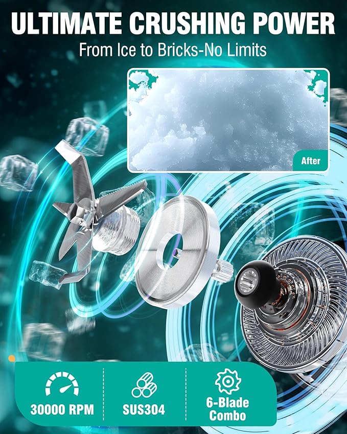 - SILKY SMOOTH ICE CRUSHING: This professional smoothie blender features a 6-leaf 3D stainless steel blade spinning at 30,000 RPM, powered by a robust 1800W upgraded copper motor. Designed for precision, it delivers fine, silky ice texture in seconds—perfect for smoothies, cocktails, or icy desserts. Ideal as a high-speed ice blender or smoothie blender for kitchen use