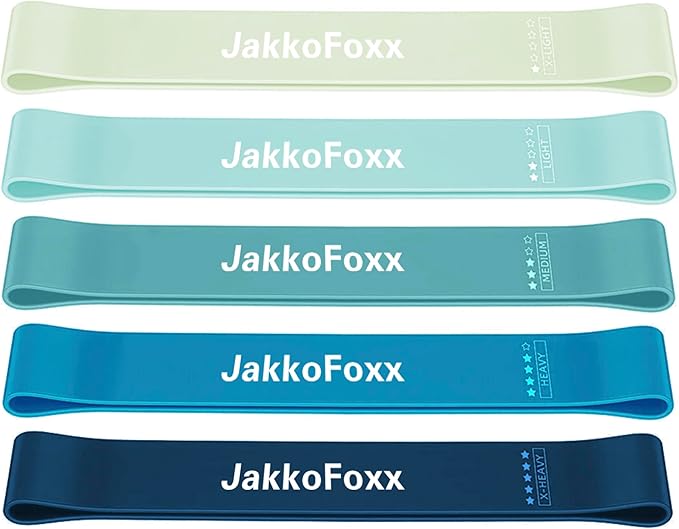 - High end exercise bands. Our 12″ by 2″ heavy duty loop resistance bands come in 5 varying resistance levels. This makes them perfect whether you are just starting to workout or a seasoned workout warrior. Our extra light and light bands are great for beginners, while our medium, heavy and extra heavy exercise bands are targeted for more intermediate and advanced strength training.