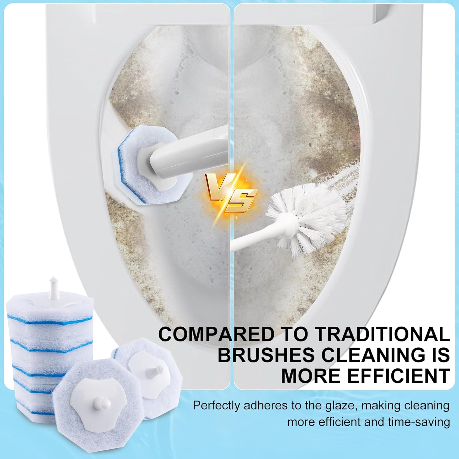- EFFICIENT CLEANING SAVES MORE TIME:These disposable toilet brush refills can help you efficiently clean the toilet, making it much easier to clean, and making the entire bathroom smell fresh and clean.