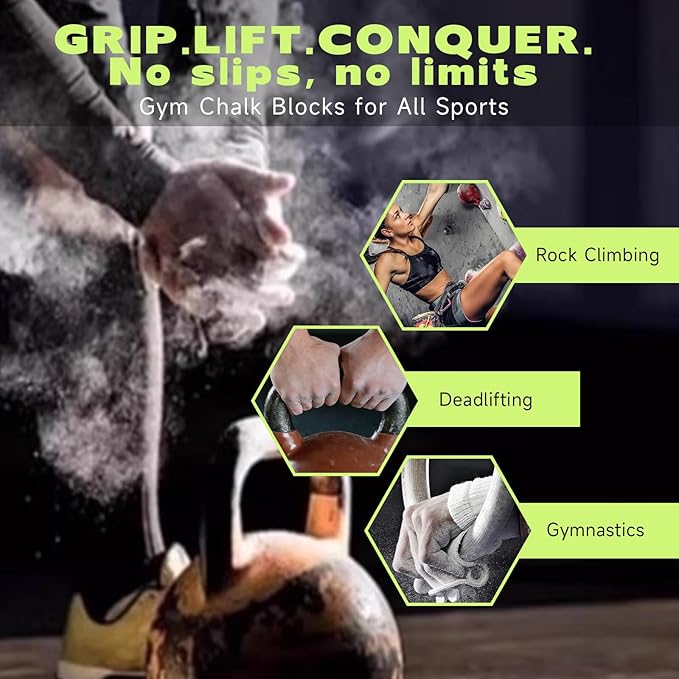 - 【Designed specifically for athletes】 our chalk blocks ensure a solid grip on equipment like barbells and dumbbells. Whether you're deadlifting or conquering a rock wall, our chalk has got your back, keeping you safe and in control.