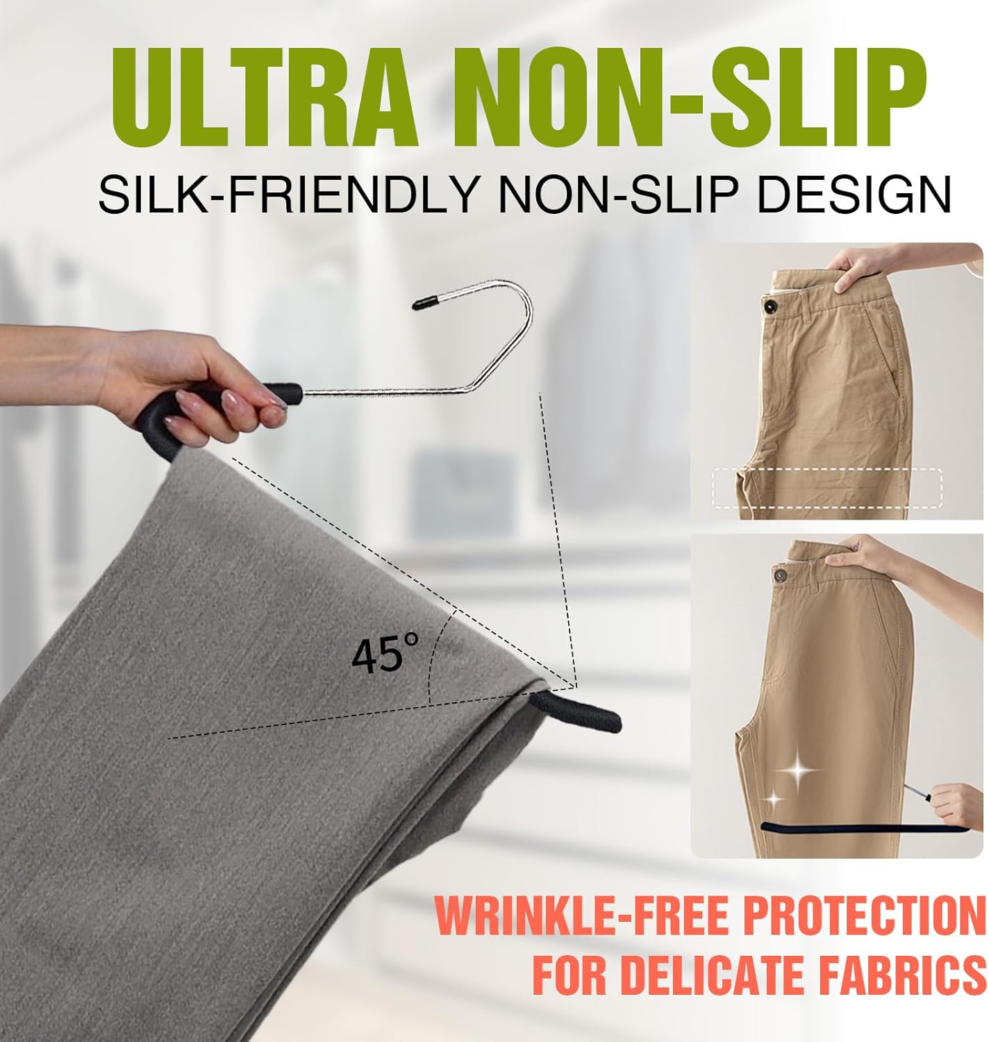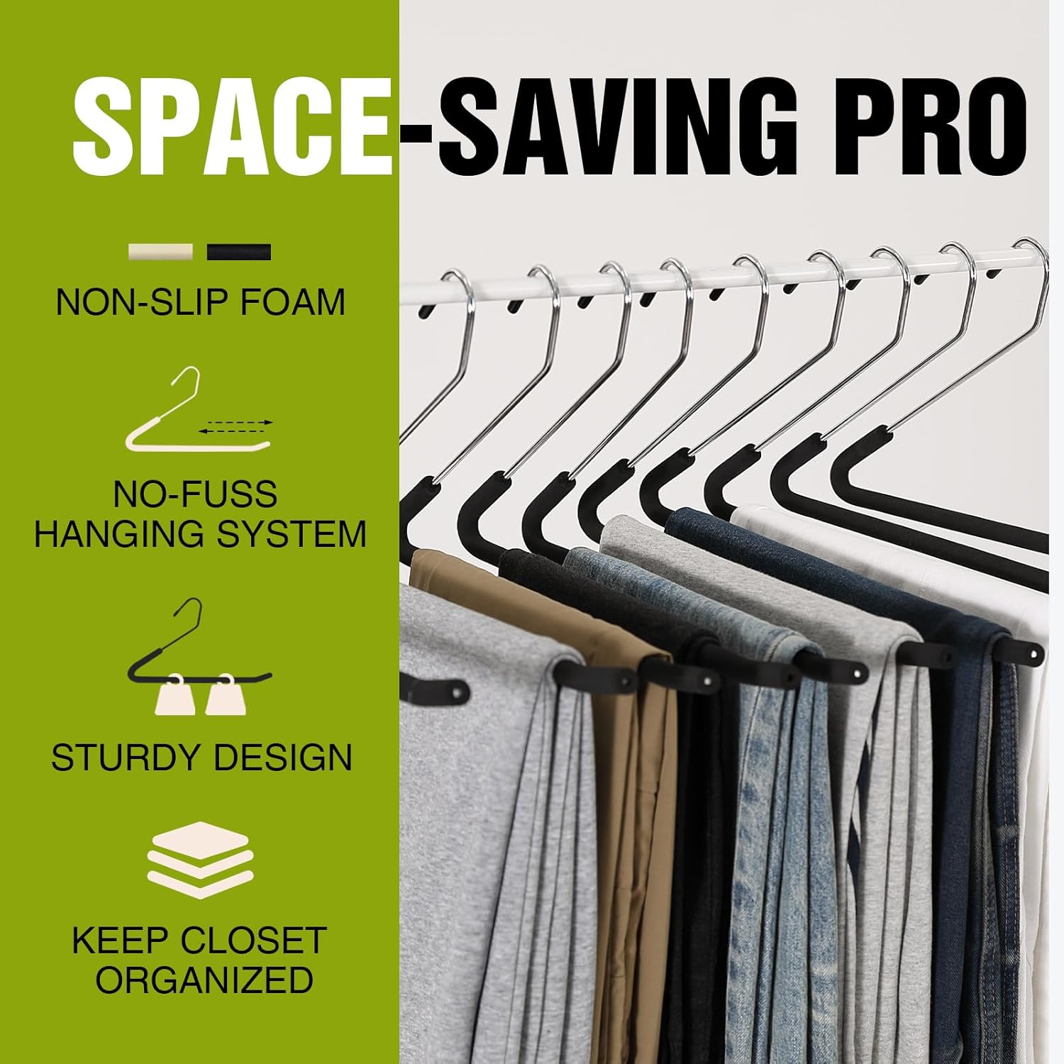 - 【Space Saving】Fitting standard closet rails, maximizes your storage room in your closet, keep your pants organized in a neat and tidy way.