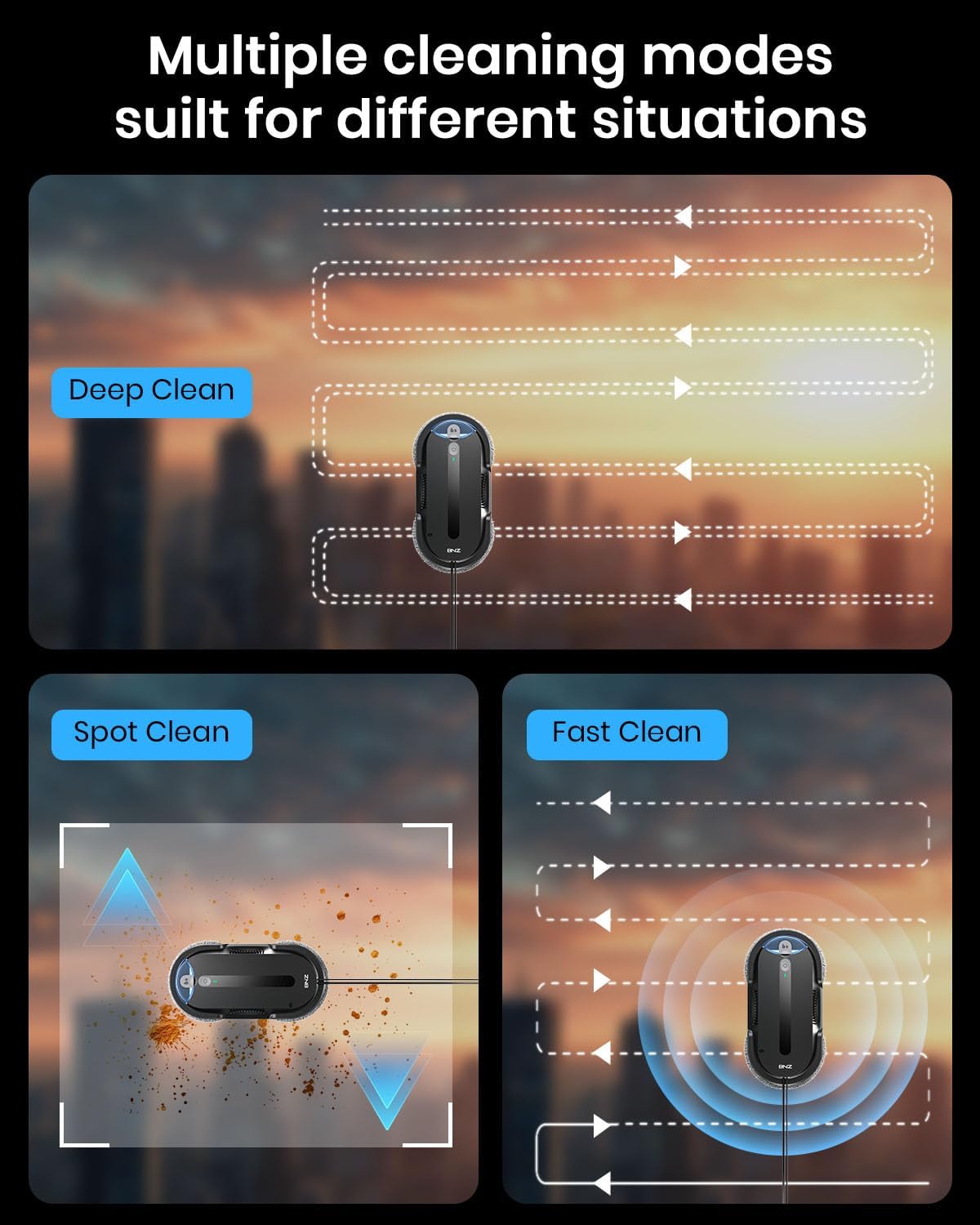 - Smart & Thorough: AI Path Planning ensures every inch of your window is cleaned without overlap or missed areas.