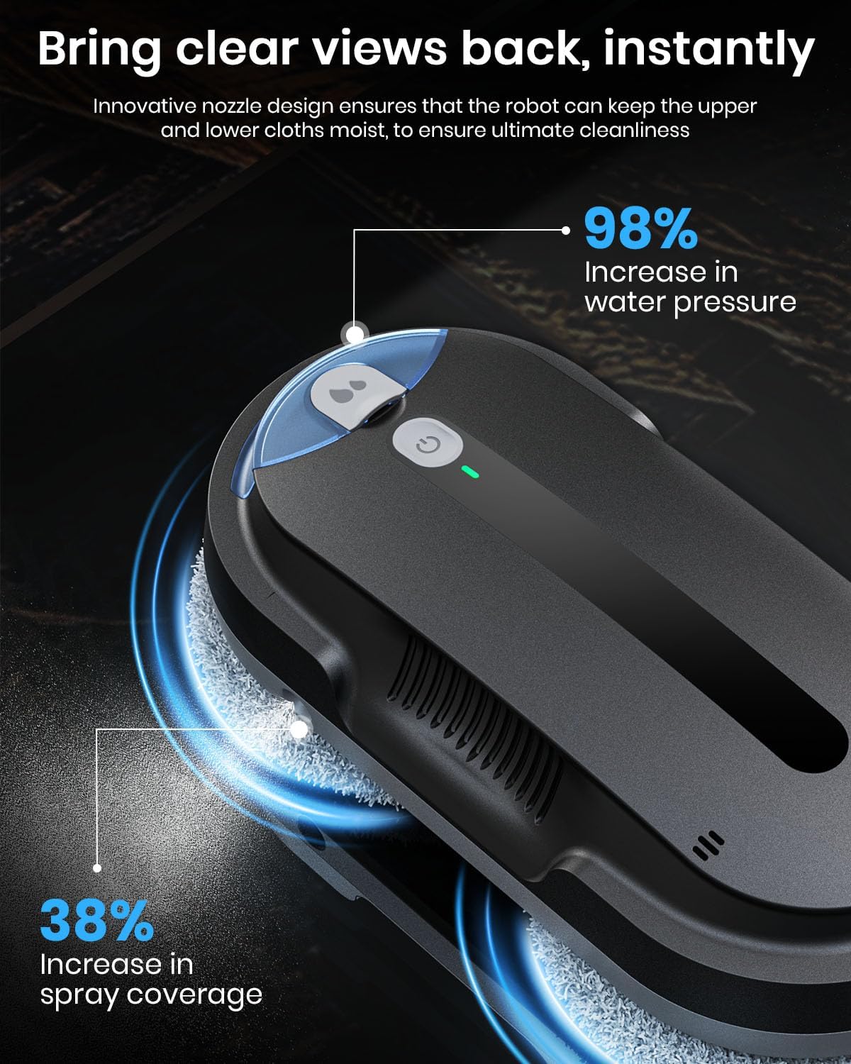 - Revolutionize your window cleaning routine with the BNZ Smart Window Cleaning Robot. Featuring powerful Twin Turbo & Independent Drive Motors, AI Path Planning, and Dual Auto-Spray Technology, this intelligent device delivers streak-free, sparkling windows with ease. Designed for safety and precision, it includes Frameless Edge Detection to prevent falls, multiple security protections, and high suction power for added reliability. Compact, sleek, and efficient, the BNZ K1 is perfect for homes, offices, and high-rise buildings: