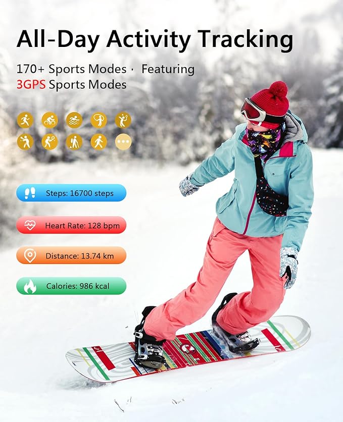 - 【All-Day Activity Tracking & 170+ Sports Modes】Maximize every workout with 170+ sports modes and 24/7 activity tracking. SOUYIE fitness tracker accurately monitors steps, distance, and calories burned all day to accelerate your goal achievement. Train smarter in 170+ activities including running, yoga, basketball, and skipping—plus 3 dedicated GPS modes (walking/running/cycling) for real-time route mapping. View real-time workout tracks on the app to analyze performance and optimize progress.