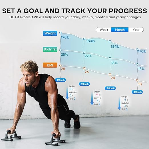 - Generous Size & Vivid Display: GE Fit Plus LN body composition scale is designed with a spacious 11.8" wide platform complemented by a 5.33" vibrant color large display, all measurements are on one scale. This makes tracking your fitness journey both convenient and enjoyable