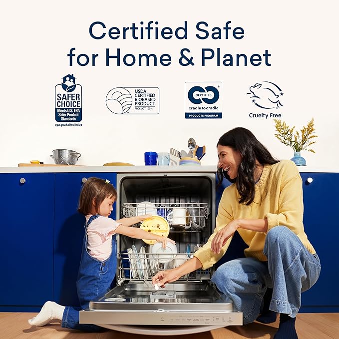 - PLASTIC-FREE, ECO FRIENDLY DISHWASHER DETERGENT TABLETS. Dishwasher Detergent Tablets that are tough on stains, but gentle on the planet. Our 100% plastic-free tablet is just as easy as any detergent pod, without any of the plastic film (PVA) found in most conventional pods.