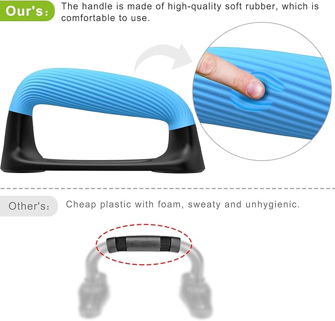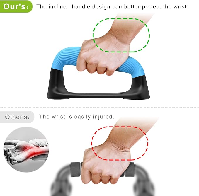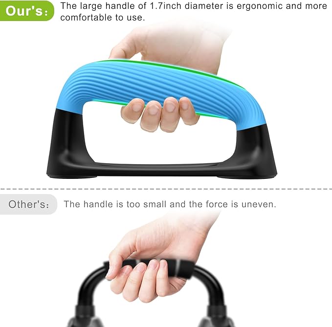 - 💎【Comfortable and Secure Grip】Our push up bars feature thickened soft plastic handles that provide a comfortable and ergonomic grip. The handle has a textured surface that prevents slipping and enhances stability. The handle is also angled to allow a natural range of motion and prevent injury