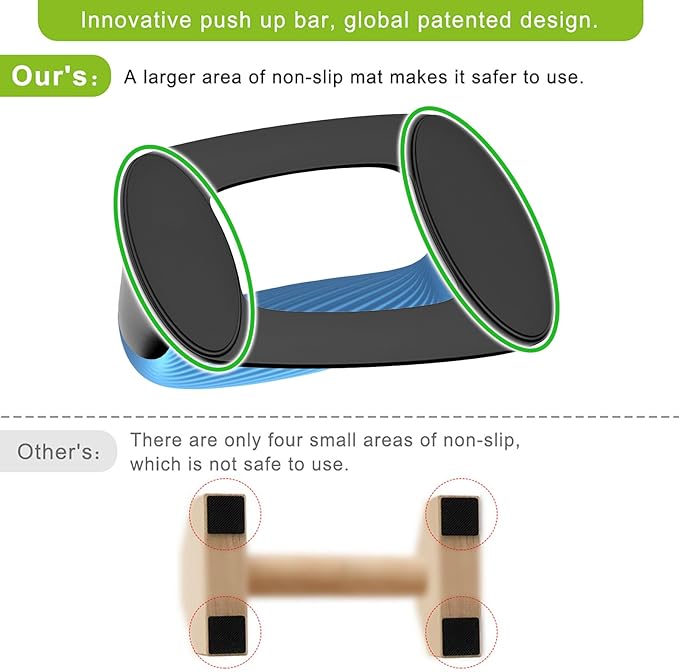 - 💯【Stable Non-Slip Base】The base of our push up bars is designed with anti-skid pads that increase friction and prevent sliding on any floor surface. You can focus on your form and technique without worrying about injuries or accidents