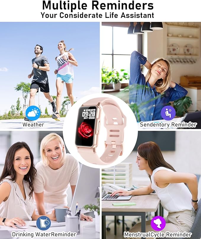 - Special Feature : 120+ Sports Modes Tracking and All-day Activity Tracking, 24/7 Heart Rate, Blood oxygen, Blood pressure monitor, Drinking Water ReminDrinking Water Reminder, Sedentary Reminder, Menstrual Cycle Reminderder, Sedentary Reminder, Menstrual Cycle Reminder, More Than 150 different Watch Faces Style & Customized Watch Face, Sleep Tracker, Call and Message Notification, Weather Forecast 120+ Sports Modes Tracking and All-day Activity Tracking, 24/7 Heart Rate, Blood oxygen, Blood pressure monitor, Drinking Water ReminDrinking Water Reminder, Sedentary… See more