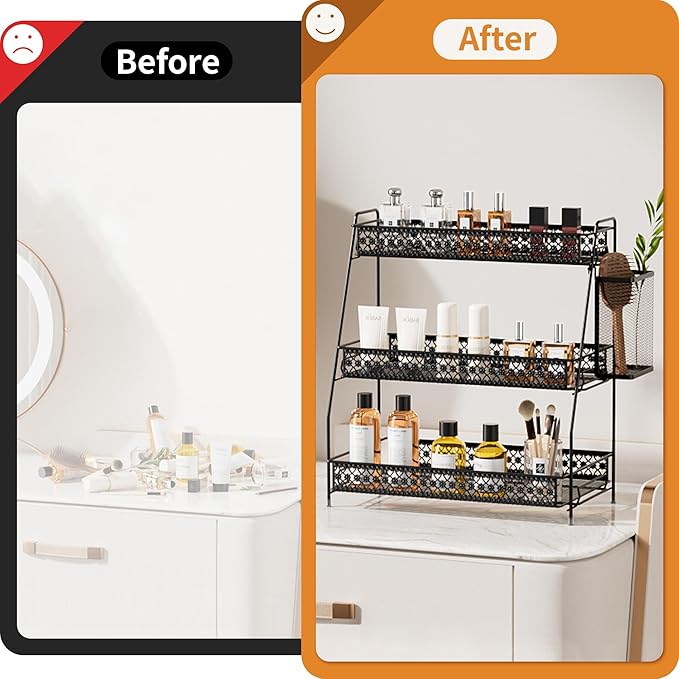 - 【3-Tier Organizer with Streamlined Design】Measuring 13.77"L x 7.08"W x 15.94"H, this organizer creates an ideal spice rack or bathroom counter organizer. The vintage design enhances any decor while delivering practical bathroom organizer functionality. Perfect for keeping daily essentials neatly organized and within easy reach without extra accessorie